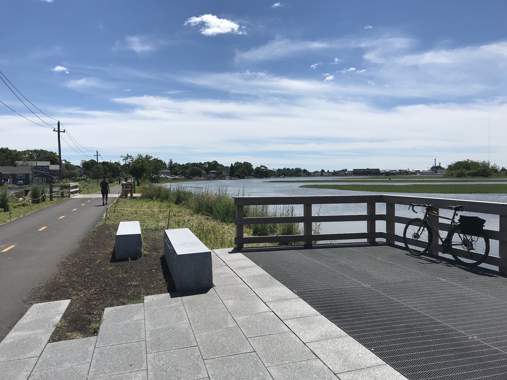 It’s still technically under construction. But the small handful of worksites are easy to bypass, and on a weekday morning, there were dozens of people walking, biking, and picnicking along the trail’s freshly-laid pavement.
